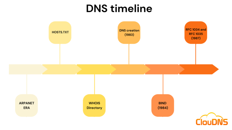 នៅថ្ងៃ​១ មករា ឆ្នាំ ១៩៨៣ ត្រូវកំណត់ថា ពេលនៃការដាក់ឲ្យដំណើរការ បណ្តាញអ៊ីនធើណេត (Internet Protocol) កំណែដើមនៃ តាមប្រព័ន្ធ ARPANET ដែលជាជំនាន់មុនដំបូងគេបង្អស់គឺ Internet Protocol version 4 (IPv4)។ ក្នុងបណ្តាញណិតវឹកនេះ (Network) គឺជាកុំព្យូទ័រភ្ជាប់ទំនាក់ទំនងគ្នាតាមប្រព័ន្ធអ៊ីនធើណេត ដោយកំព្យូទ័រនិមួយៗមានលេខកូដតំណាងមួយ (IP) ឩទាហរណ៍៖ 192.168.0.1 ។ ក៏ប៉ុន្តែសាកស្រមៃទៅមើលថាបើគ្រប់វិបសាយនៃក្រុមហ៊ុនផ្សេងៗទាំងអស់សុទ្ធតែ ប្រើប្រាស់លេខ IP នេះនៅពេលរុករកអ៊ីនធើណេត (Browser) តើវាមានភាពងាយស្រួលក្នុងការចាំទេ ថាក្រុមហ៊ុនណាមានលេខដូដប៉ុន្មានខ្លះ? ច្បាស់ណាស់វាមិនងាយស្រួលនោះទេ ហើយក៏មិនងាយក្នុងការចងចាំដែរ។ ដូចនេះហើយទើប ប្រព័ន្ធឈ្មោះអសយដ្ឋានគេហទំព័រជាពាក្យ Domain Name System (DNS) ត្រូវបានបង្កើតឡើង ដែល DNS ជួយបកប្រែ ពីឈ្មោះអសដ្ឋានគេហទំព័រ (Domain Name) ឩទាហរណ៍ www.example.com ទៅជា IP ។